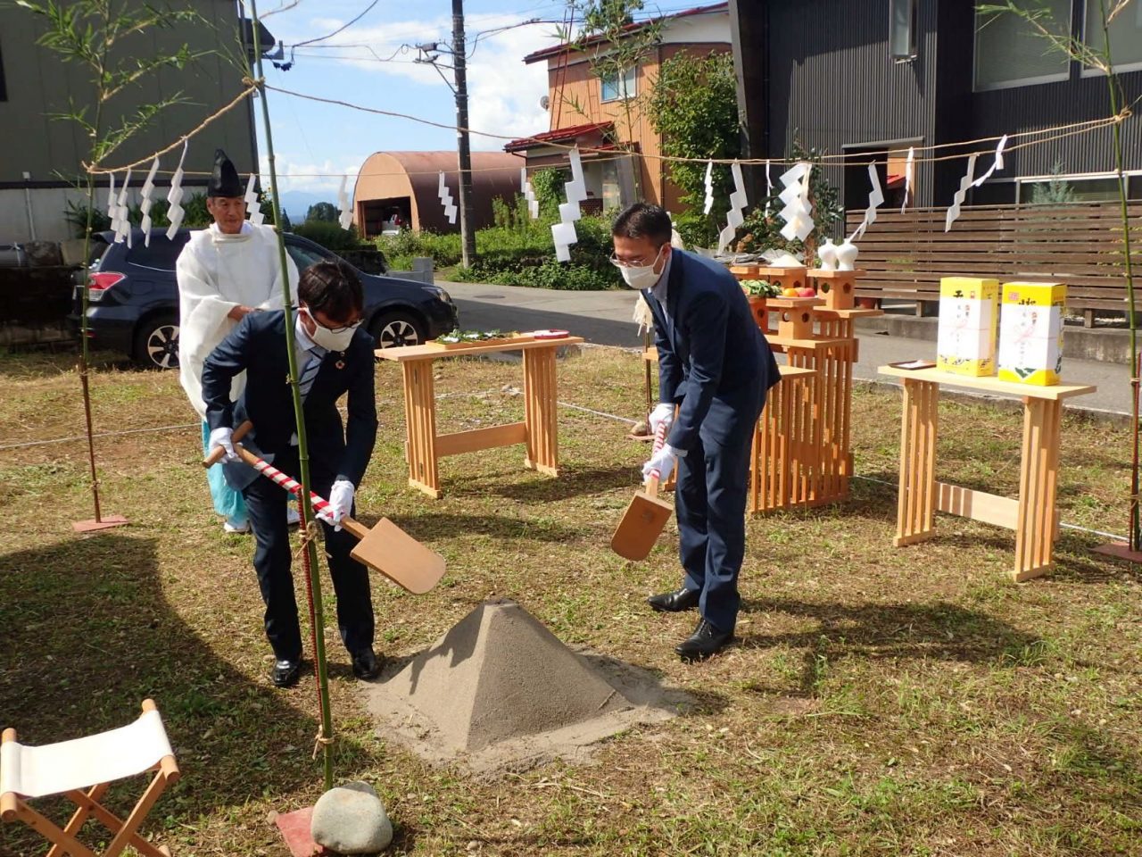 十日町市中条で1階が鉄骨造で2階3階が木造耐雪式の地鎮祭が執り行われました。