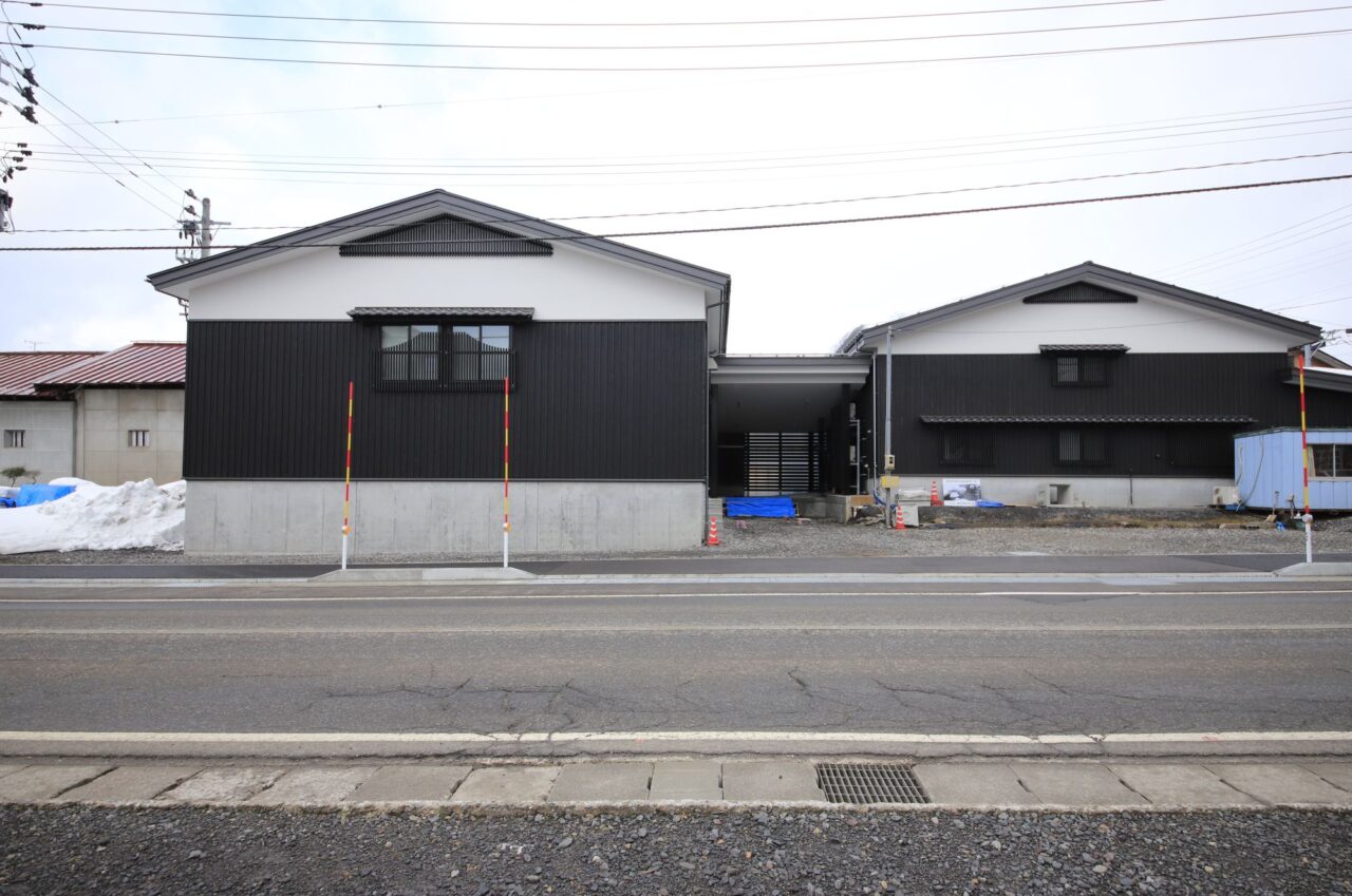 津南町で昨年から工事を進めておりました、苗場酒造株式会社様の第2酒蔵が外構工事を残し完成しました。一昨年の第1酒蔵と同じ木造耐雪3.5mの切妻屋根の連棟で、酒蔵らしい雰囲気を醸し出しています。 今回の建物は瓶詰め工場と出荷室、槽場、酒タンク室、冷蔵庫などが配置され、第1酒蔵との連携で、より効率の良い出荷体制が整ってきました。