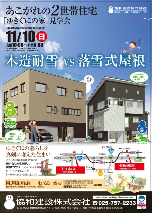六日町で木造耐雪3.5m住宅の見学会を、12月1日午前10時から午後4時まで開催い…