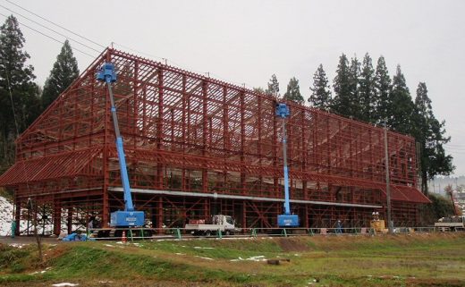 まだ日陰には雪が残っている中で、松代そば善屋さんの池田工場の鉄骨が急ピッチで進んで…