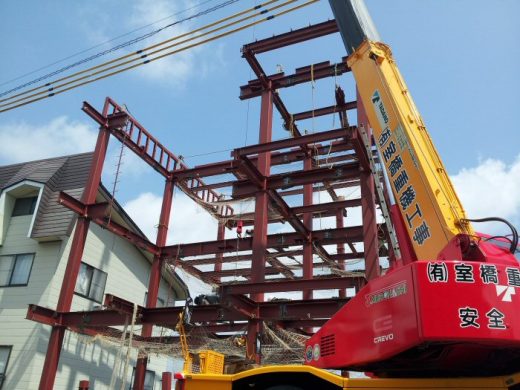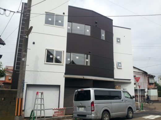 十日町市の国道117号、四日町立体交差付近で、重量鉄骨3階建ての店舗併用住宅が建ち…