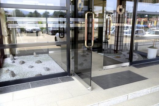 会社の風除室に中津川を再現しました...